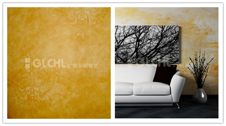 3、藝術涂料最大的賣點除了環保,就是裝飾效果了,廣麗多彩墻藝市場部王經理介紹說:“眾所周知,墻紙有著很漂亮的花紋及質感,但是無論多有技術的施工人員,貼出來的墻紙,都會看得出明顯的接縫,達不到完整一體的裝飾效果,而藝術涂料,除了可以做出墻紙一樣的花紋和手感,還可以實現顏色和花紋完全量身訂制,就是說客戶喜歡什么顏色的花,想要什么風格的裝飾效果,都能全做出來,要讓墻面復古還是時尚,全由客戶作主,這點,目前只有墻藝藝術涂料能做到”