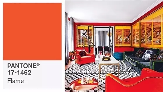 橘紅色火焰,代表群聚和玩樂。個性高調而活躍,這奇妙的戲劇性的溫度為2017年春天調色盤增加火熱熱的情緒,比野性的鮮紅色多了些許親切感,同時又有一種俏皮的感覺,相信無論是服裝或者家居上都能有意想不到的美感。